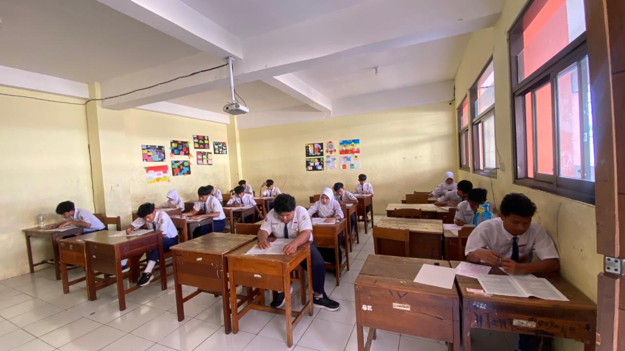 Peserta didik mengikuti ujian dengan tertib dan penuh kesungguhan sebagai bentuk persiapan menghadapi Tes Kemampuan Akademik yang sesungguhnya.
